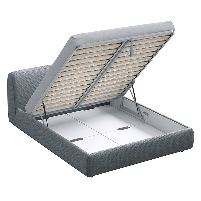 Мебель для спальни достаточно высокая и это создает эффект легкости. Каркас кровати имеет скругленные края, чтобы избежать травмоопасных ситуаций во время подъема утром. С плавными формами и мягкими переходами в конструкции, она отлично впишется в скандинавский или минималистичный стили интерьеров.